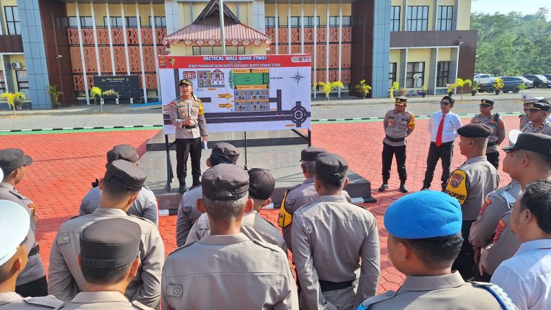 Usai Apel siaga dan pemeriksaan kendaraan Kabagops AKP Archye nevadha, S.I.K., M.H memimpin kegiatan tactical wall game (TWG) dihadiri seluruh personel pengamanan debat kandidat paslon pilkada serentak 2024