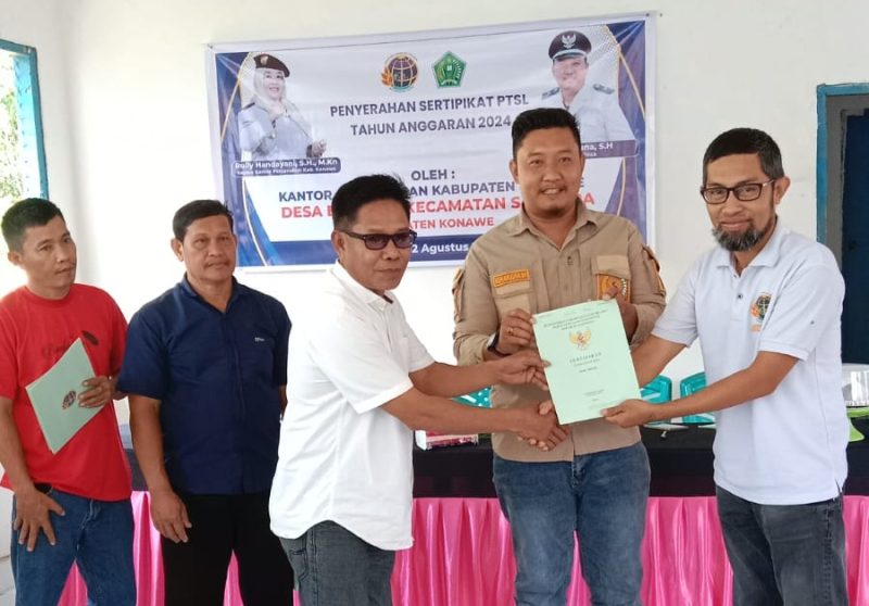 Muarasultra.com, Konawe – Program Pendataan Tanah Sistematis Lengkap (PTSL) di Desa Bao-bao, Kecamatan Sampara, telah berhasil. Sebanyak 133 bidang tanah warga kini telah resmi bersertifikat.