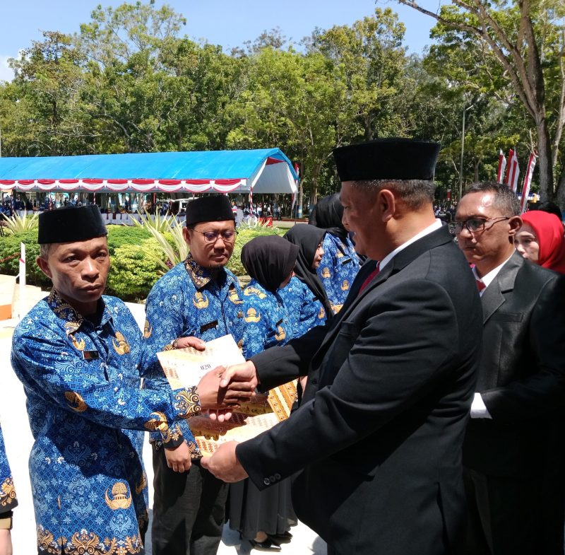 Muarasultra.com, KONAWE – 545 Guru di Kabupaten Konawe menerima surat keputusan atau SK pengangkatan Aparatur Sipil Negara (ASN) Pegawai Pemerintah Dengan Perjanjian Kerja (P3K) Guru, di momen Hari kemerdekaan RI ke 78, Kamis (17/8/203) pagi tadi.