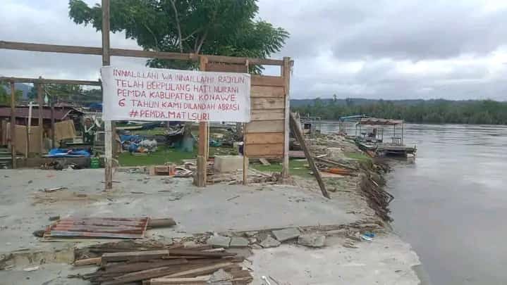 Sejak 6 tahun lalu abrasi atau pengikisan pantai Desa Muara Sampara diakibatkan oleh aktivitas tambang nikel di Desa Morosi, Kecamatan Morosi, Kabupaten Konawe.