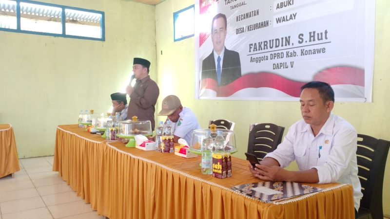 Muarasultra.com, KONAWE – Anggota DPRD Kabupaten Konawe, Fakrudin, S.Hut., melaksanakan reses di desa Walay, Kecamatan Abuki, Kabupaten Konawe, Selasa 25 Februari 2025.