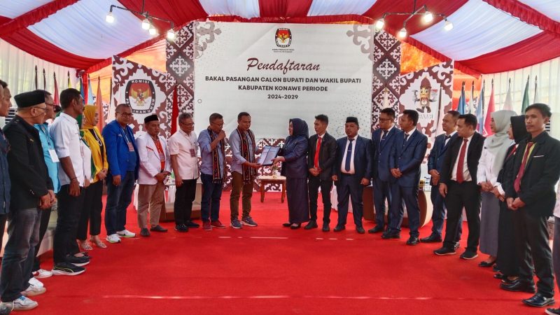 Muarasultra.com, KONAWE – Komisi Pemilihan Umum atau KPU Kabupaten Konawe secara resmi menerima pendaftaran calon bupati dan wakil bupati Konawe Yusran Akbar – Syamsul Ibarahim. Kamis (29/8/2024).