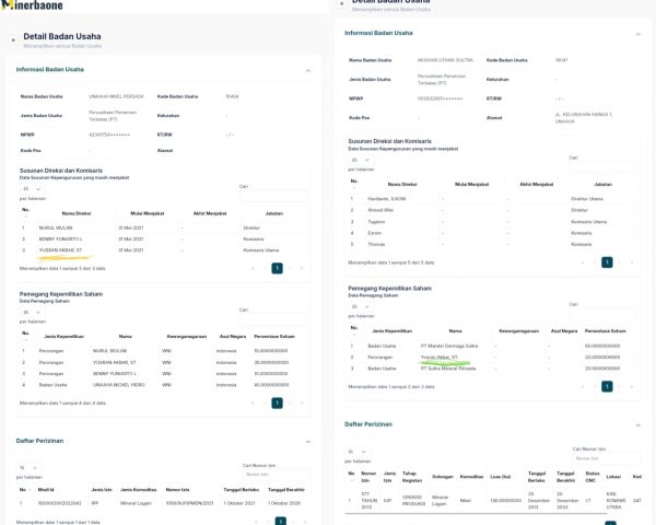 Mengenai data Minerba One Data Indonesia (MODI) Kementerian Energi dan Sumber Daya Mineral (ESDM) yang masih tercantum nama Yusran Akbar sebagai komisaris disebabkan karena belum adanya pembaruan data oleh perusahaan bersangkutan pada sistem.