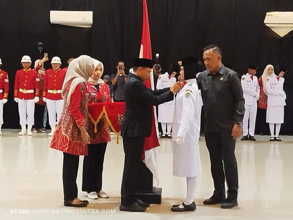 Muarasultra.com, KONAWE – Bupati Konawe, H. Yusran Akbar, ST, secara resmi mengukuhkan 74 putra dan putri Pasukan Pengibar Bendera Pusaka (Paskibraka).