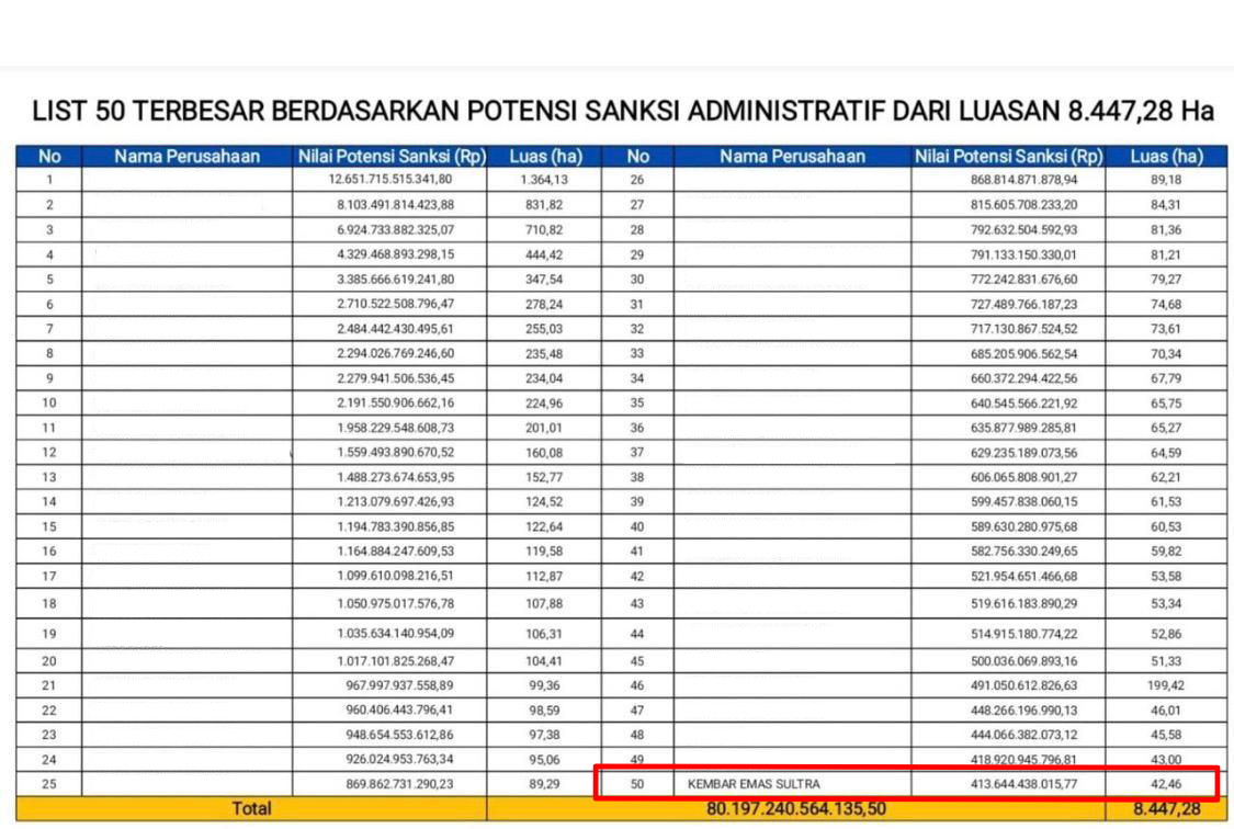 Muarasultra.com, KONUT - Perusahaan tambang PT Tristaco Mineral Makmur (TMM) dikenakan sanksi administratif oleh Satuan Tugas (Satgas) Penertiban Kawasan Hutan…