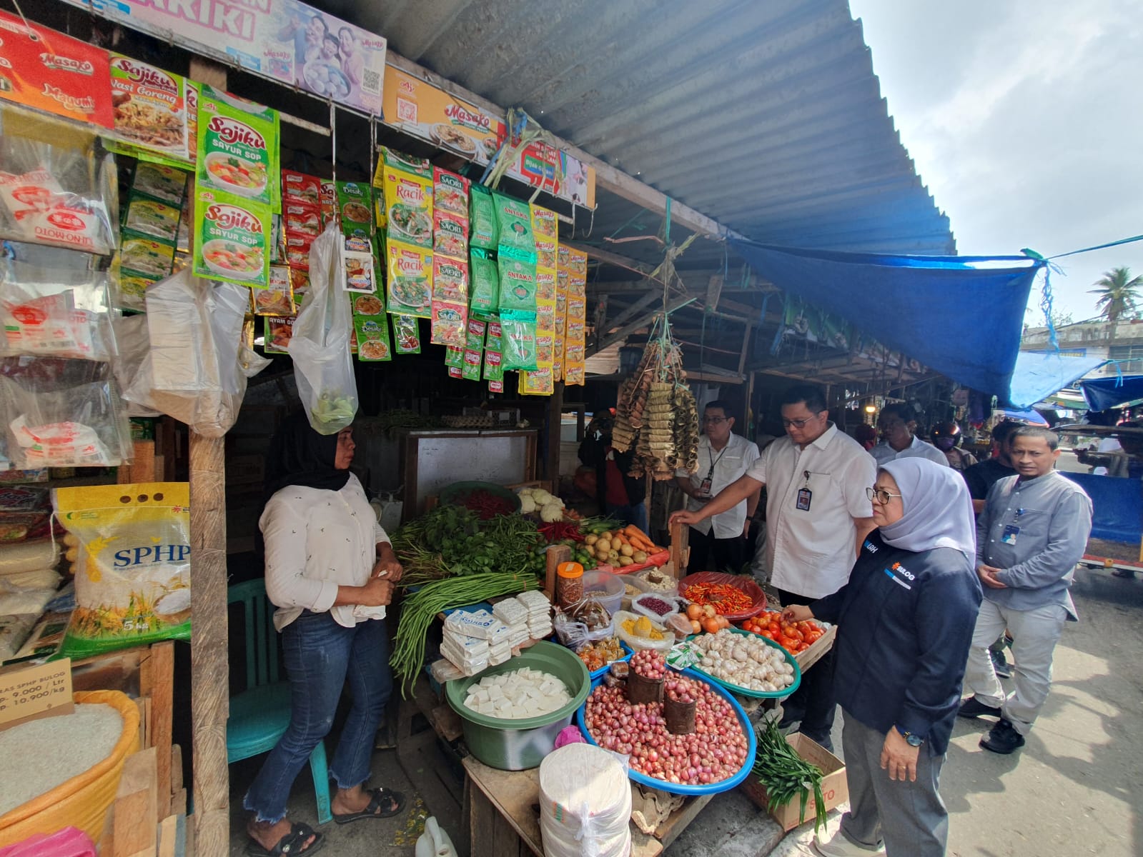 Di dua pasar tersebut Satgas mengecek ketersedian sejumlah bahan pangan pokok berikut dengan harganya ke sejumlah pedagang.