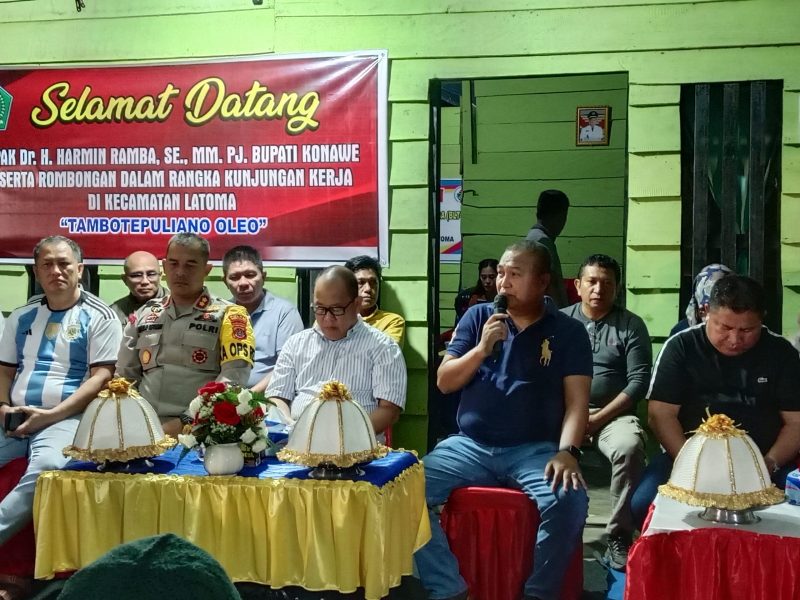 Usai berdialog bersama warga, Pj Bupati Konawe Harmin Ramba, Ketua DPRD kabupaten Konawe, Kapolres Konawe AKBP Ahmad Setiadi, Ketua Apdesi Sultra H. Tasman serta pimpinan OPD Kabupaten Konawe menyerahkan bantuan pembangunan masjid se Kecamatan Latoma masing-masing masjid mendapatkan bantuan 10 juta rupiah.