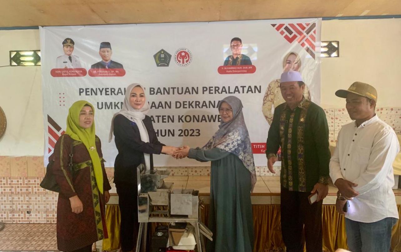 “Ketiga penerima adalah UMKM binaan Dekranasda Konawe untuk tahun 2023,” kata Ketua Dekranasda Konawe, Titin Nurbaya Saranani saat penyerahan bantuan.