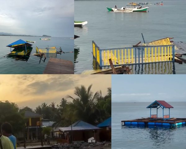 Berdasarkan informasi yang beredar, diduga kapal yang melintas di sekitar perairan Pantai Ulusawa menabrak karamba milik warga sehingga bangunan tersebut rusak.