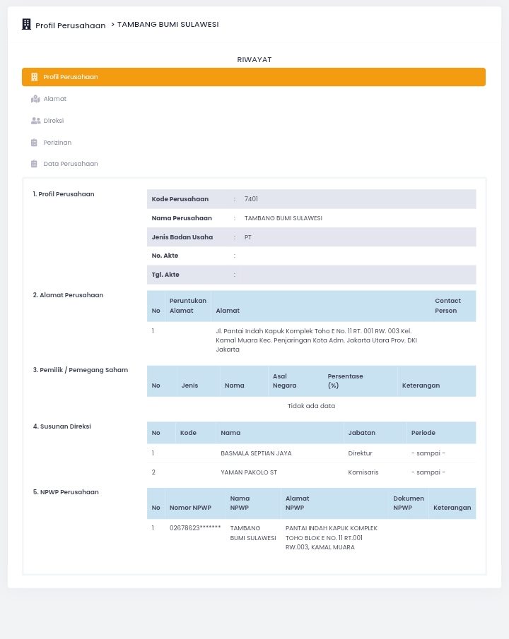Perusahaan milik Basmala Septian Jaya dan Yaman Pakolo ini berada di wilayah di Desa Pungkalaero, Kecamatan Kabaena Selatan, Kabupaten Bombana, Sulawesi Tenggara.