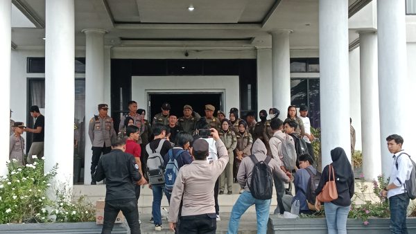 Ketegangan sempat memuncak ketika massa aksi berusaha masuk ke dalam gedung DPRD, yang kemudian memicu aksi saling tarik dengan pihak kepolisian dan Satpol PP. Situasi mereda sejenak dengan kehadiran anggota DPRD dari Komisi II.