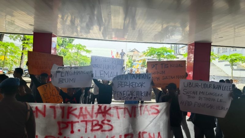 Muarasultra.com, KENDARI – Konsorsium Mahasiswa Sultra (Korum) yang tergabung dalam Aliansi Mahasiswa Peduli Lingkungan dan Kehutanan (AMPLK) Sultra, Amara Sultra dan Jangkar Sultra kembali melakukan aksi unjuk rasa menyoal dugaan pencemaran lingkungan PT Tambang Bumi Sulawesi (TBS) di Blok Watalara, Desa Pu’ununu Kecamatan Kabaena Selatan, Kabupaten Bombana, Senin 10 Februari 2025.