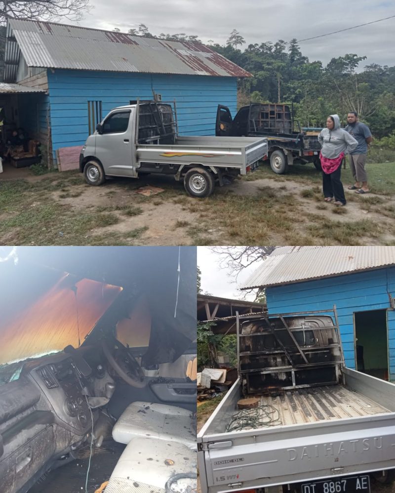 Lanjutnya, seketika itu pelapor bersama suaminya Ahmad Edison keluar dari rumah dan mendapati 1 unit mobil Dhahatsu Gran Max warna Silver No.Pol. DT 8867 AE dan 1 (satu) unit mobil Dhaihatsu Gran Max warna hitam No.Pol. DT 1367 XX yang kedua mobil tersebut sebelumnya di parkir didepan rumah / halaman rumah pelapor dalam keadaan terbakar.