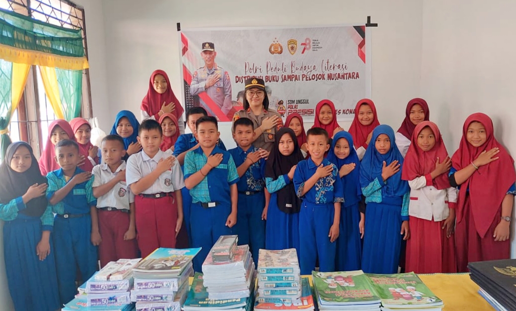 Muarasultra.com, KONAWE – Dalam rangka mendukung program Polri Peduli Budaya Literasi Polsek Pondidaha Polres Konawe yang dipimpin langsung oleh Kapolsek Pondidaha Iptu Della Indah Lestari S.Tr.K, C.PSP, MM bagikan buku kepada siswa siswi di SDN 1 Wawolemo, Rabu (6/9/2023).