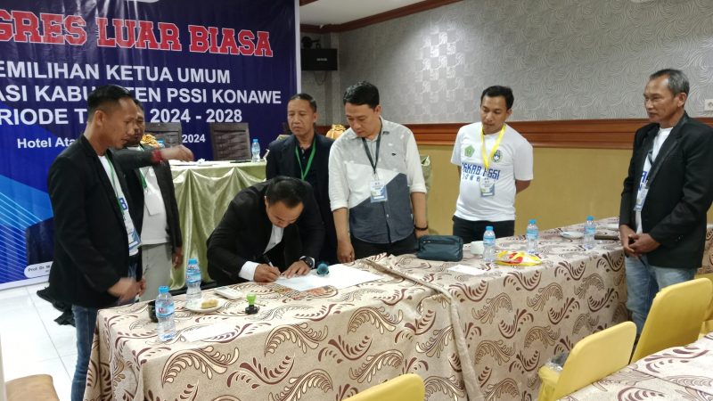 Penandatanganan dokumen hasil Kongres luar biasa Askab PSSI Konawe.
