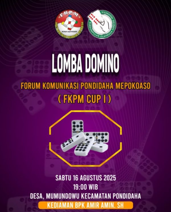 Lomba Domino ini akan dilaksanakan di Desa Mumundowu Kecamatan Pondidaha Kabupaten Konawe dirumah Ketua FKPM Amir Amin, yang dimulai pada pukul 19.00 malam. Ajang lomba olah raga otak ini bakal diagendakan setiap tahun nantinya.