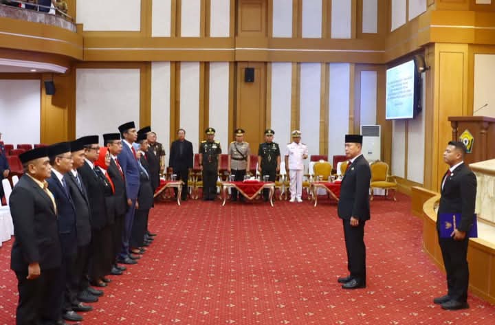 Muarasultra.com, Kendari – Gubernur Sulawesi Tenggara, Mayjen TNI (Purn) Andi Sumangerukka, secara resmi melantik dan mengambil sumpah jabatan Pejabat Pimpinan Tinggi Pratama di lingkungan Pemerintah Provinsi Sulawesi Tenggara (Pemprov Sultra), yang berlangsung khidmat di Ruang Pola Kantor Gubernur Sultra, pada Senin (26/5/2025). Agenda ini merupakan bagian dari rotasi dan mutasi pejabat sebagai bentuk penyegaran organisasi dan penguatan tata kelola pemerintahan daerah.