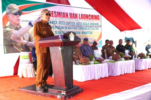 Gubernur Sulawesi Tenggara, Mayjen TNI (Purn.) Andi Sumangerukka, dalam sambutannya menyampaikan bahwa peluncuran kemasan benih padi Sanggoleo Sultra memiliki makna strategis.
