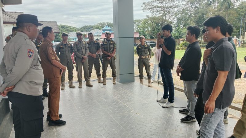 Aksi demontrasi berlangsung aman dan lancar. Aksi ini mendapatkan pengawalan personil Polres Konawe danĀ satpol-pp Kabupaten Konawe.