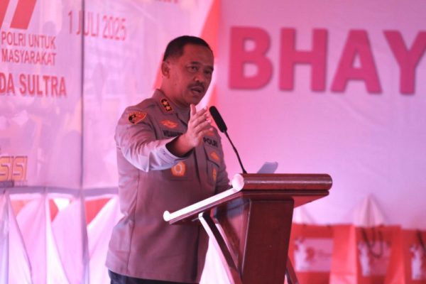 Muarasultra.com, Kendari – Dalam rangka memperingati Hari Bhayangkara ke-79, Polda Sulawesi Tenggara (Sultra) melaksanakan kegiatan bakti kesehatan yang dipusatkan di Eks MTQ Kendari pada Senin, 16 Juni 2025. Kegiatan yang bertujuan untuk memberikan pelayanan kesehatan gratis kepada masyarakat ini dibuka langsung oleh Kapolda Sultra Irjen Pol Didik Agung Widjanarko, S.IK., M.H., didampingi Wakapolda Sultra Brigjen Pol Amur Chandra Juli Buana, S.H., M.H serta pejabat utama Polda Sultra dan Ketua Bhayangkari Sultra beserta pengurus Bhayangkari lainnya.