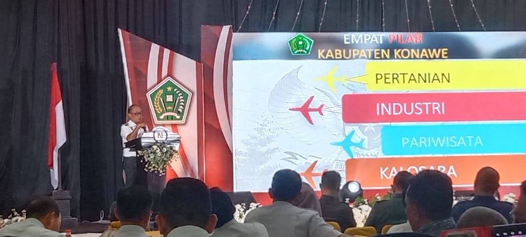Dalam kesempatan itu, PJ Bupati Konawe dalam sambutannya menyebut ada empat pilar Konawe menuju Kota Mandiri yakni Pertanian, Industri, Pariwisata dan Kalosara.