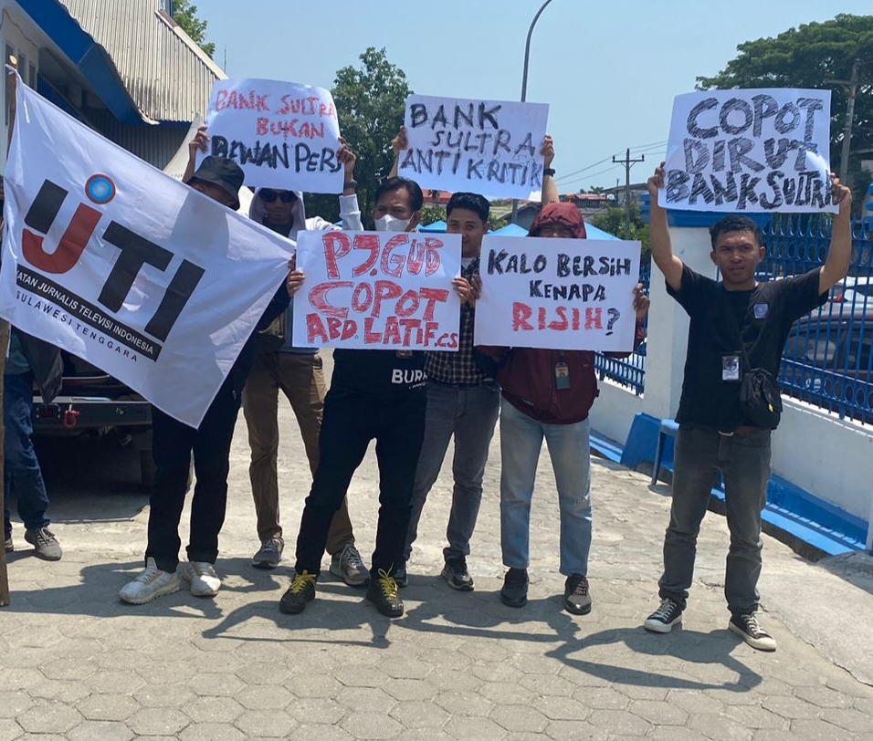 Sementara itu, Kordiv Advokasi IJTI Sultra, Fadli Aksar menjelaskan, demonstrasi dilakukan terhadap manajemen Bank Sultra, karena tindakan humas yang juga divisi sekretaris bernama Nurhuma menghalang-halangi tugas jurnalis.