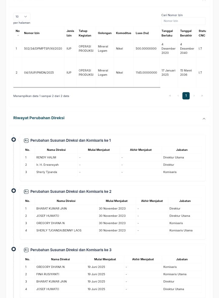 Laporan ini mengungkap tentakel jaringan bisnis keluarga Sherly yang meluas: PT Karya Wijaya (tambang nikel di Gebe), PT Bela Sarana Permai (pasir besi di Wooi Obi), PT Amazing Tabara (emas), PT Indonesia Mas Mulia (emas), PT Bela Kencana (nikel), serta entitas terkait lain di bawah kelompok keluarga Laos-Tjoanda. Kepemilikan mayoritas, jabatan komisaris, dan kendali operasional yang erat dengan pejabat publik memunculkan isu konflik kepentingan antara jabatan politik dan kepemilikan perusahaan tambang.