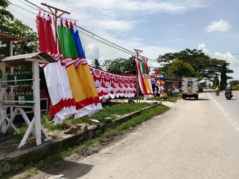 Muarasultra.com, KONAWE – Jelang perayaan Hari kemerdekaan republik Indonesia yang ke 78 tahun 2023, sejumlah pedagang umbul – umbul dan bendera musiman mulai terlihat di beberapa titik jalan poros Unaaha – Kendari di Kabupaten Konawe, Sulawesi Tenggara (Sultra).