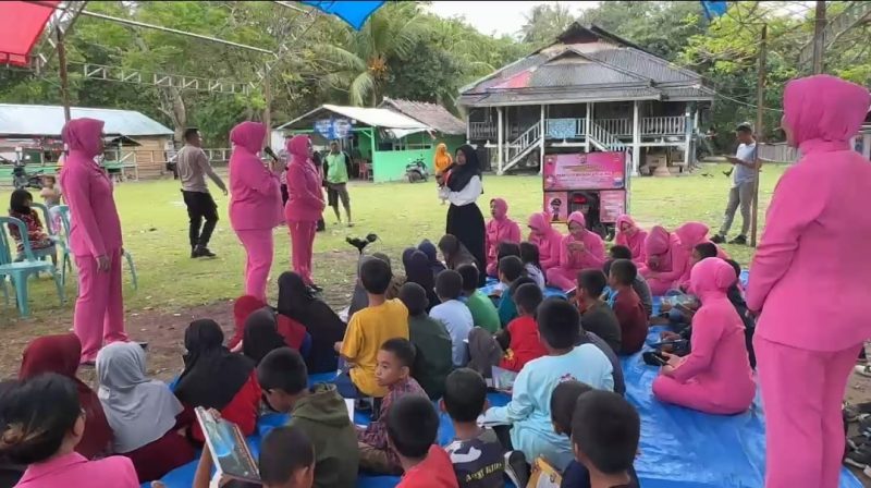 Kegiatan taman baca keliling bhayangkari peduli pendidikan bertempat di desa taipa kecamatan lembo kabupaten konawe utara