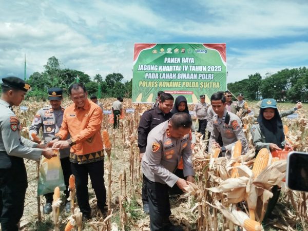 Muarasultra.com, KONAWE – Kapolda Sulawesi Tenggara (Sultra) Irjen Pol Didik Agung Widjanarko, S.IK., M.H., bersama jajaran Pejabat Utama (PJU) Polda Sultra melaksanakan panen raya jagung kuartal IV tahun 2025 di lahan binaan Polri, Polres Konawe.