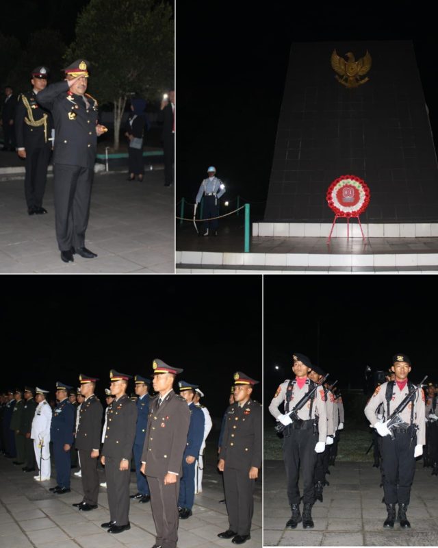 Selain itu, Kapolda juga membacakan naskah renungan Suci seiring dengan dipadamkannya lampu di TMP agar para personel dan peserta yang hadir dapat memaknai arti dari perjuangan para pahlawan yang telah gugur.