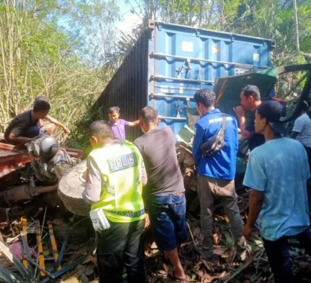 “Mobil yang dikemudikan oleh lelaki atas nama Risman bergerak dari arah Sampara menuju arah Konut. Saat mobil tronton kontainer yang bermuatan ban dengan berat 12 ton menurun dan menikung mobil tersebut mengalami rem blong dan masuk ke jurang pada sekira 06.20 Wita,” jelasnya.