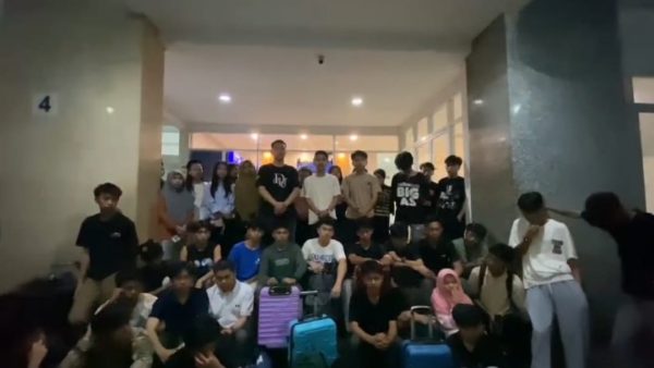Dari pantauan dalam video, puluhan mahasiswa terlihat membawa tas dan perlengkapan pribadi, sementara sebagian lainnya duduk di area kantor sembari berdiskusi.
