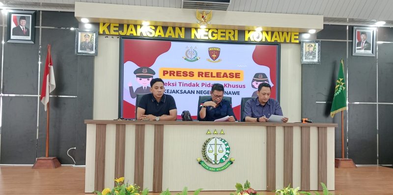 Muarasultra.com, KONAWE – Kejaksaan negeri (KEJARI) Konawe menggelar kegiatan konferensi pers perihal penetapan dua orang tersangka dalam kasus dugaan tindak pidana korupsi pekerjaan tambatan perahu di desa Sawapudo dan desa Saponda, Kecamatan Soropia, Kabupaten Konawe, Tahun anggaran 2023.