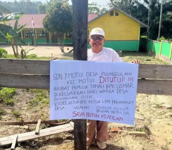 Bangunan SDN 7 Motui sendiri berdiri di atas tanah yang berasal dari tanah Pak Usmar, sebagaimana tertulis jelas dalam SKT 2015. Ketika pemerintah desa justru mengusir pemilik tanah tersebut, maka penutupan SD oleh Pak Usmar bukanlah tindakan kriminal, melainkan protes moral yang lahir dari rasa terzalimi dan ketidakadilan mendalam yang ia alami.