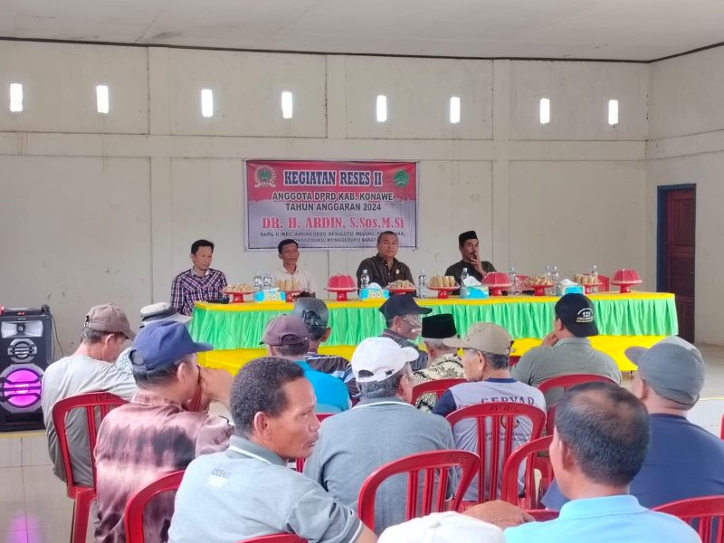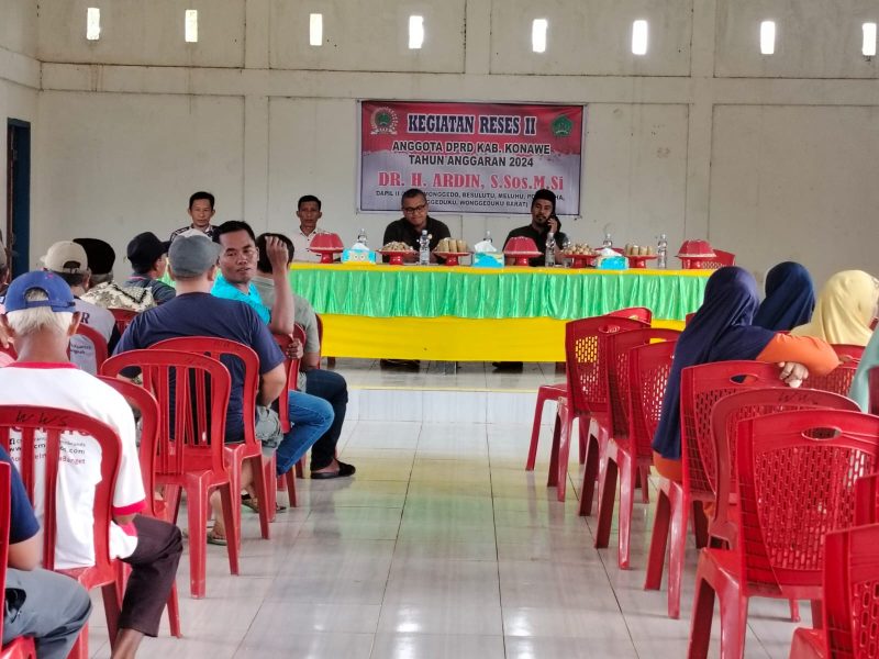 Muarasultra.com, KONAWE – Masa reses ke 2 kali ini Ketua DPRD Kabupaten Konawe, Dr. Ardin, S.Sos., M.Si., melaksanakan reses di desa Wawosolo, Kecamatan Wonggeduku, Kabupaten Konawe, Sulawesi Tenggara, Selasa (20/2/2024).