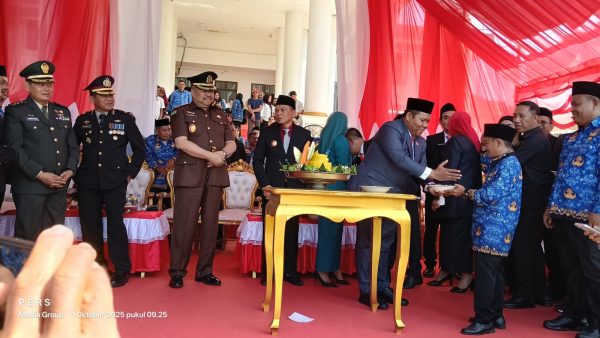 Ucapan selamat tersebut disampaikan langsung oleh Ketua DPRD Konawe, I Made Asmaya, S.Pd., MM., saat menghadiri peringatan Hari Kesaktian Pancasila yang dirangkaikan dengan pelantikan sekaligus penyerahan Surat Keputusan (SK) PPPK, Rabu (1/10/2025) di halaman Kantor Bupati Konawe.
