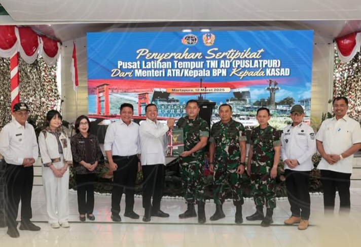 Komitmen Selesaikan Persoalan Aset TNI, Menteri Nusron Serahkan Sertipikat Tanah untuk Puslatpur TNI AD Terluas se-Asia
