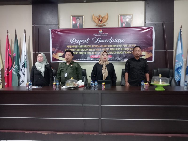 Muarasultra.com, KONAWE – Komisi Pemilihan Umum atau KPU Kabupaten Konawe menggelar rapat koordinasi Persiapan pembentukan petugas pemutakhiran data pemilih dan evaluasi pembentukan sekertariat PPK dan sekretariat PPS untuk Pilkada tahun 2024.