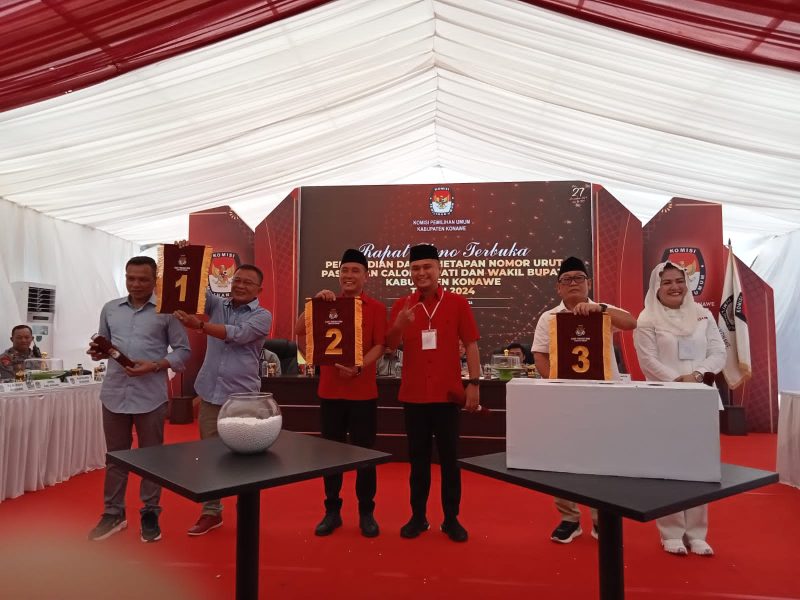 Dalam pencabutan nomor urut 1 pasangan calon Bupati konawe dan wakil bupati konawe Yusran Akbar dan Samsul Ibrahim, sedangkan nomor urut 2 pasangan calon bupati dan wakil bupati konawe Rusdianto dan Fachri Pahlevi Konggoasa dan nomor urut 3 Pasangan Calon Bupati Dan Wakil Bupati Konawe Harmin Ramba Dan Ibu Dessy Indah Rachmat.