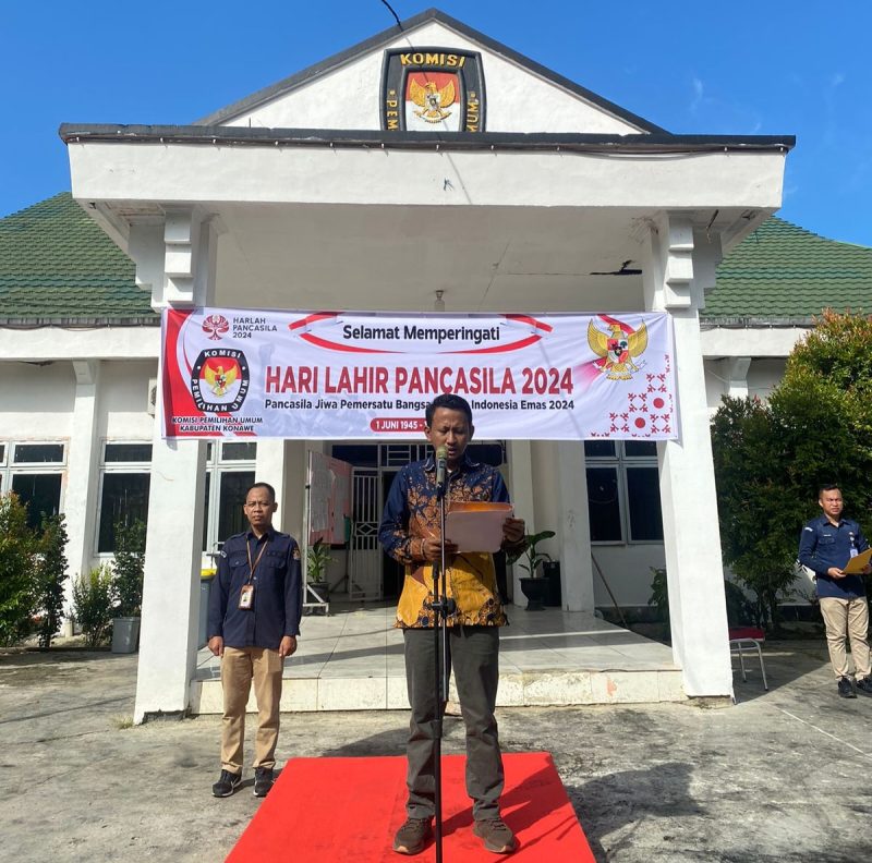 Muarasultra.com, KONAWE – Dalam rangka peringatan hari lahir panca tahun 2024, Komisi Pemilihan Umum atau KPU Kabupaten Konawe menggelar upacara di halaman Kantor KPU Kabupaten Konawe, Sabtu (1/6/2024).