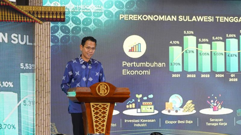 Muarasultra.com, KENDARI – Bank Indonesia (BI) Provinsi Sulawesi Tenggara (Prov. Sultra) sukses menggelar Pertemuan Tahunan Bank Indonesia (PTBI) 2025 dengan mengangkat tema optimis: “Tangguh dan Mandiri: Sinergi Mendorong Pertumbuhan Ekonomi Lebih Tinggi dan Berdaya Tahan.”