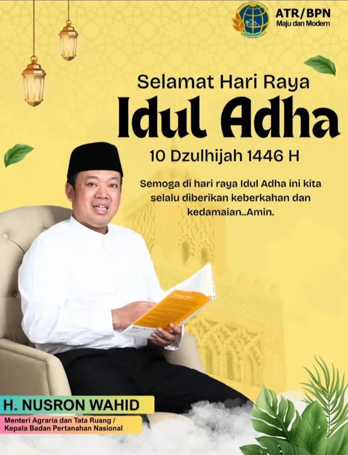 Menteri Agraria dan Tata Ruang/Kepala Badan Pertanahan Nasional mengucapkan Selamat Iduladha 1446 Η