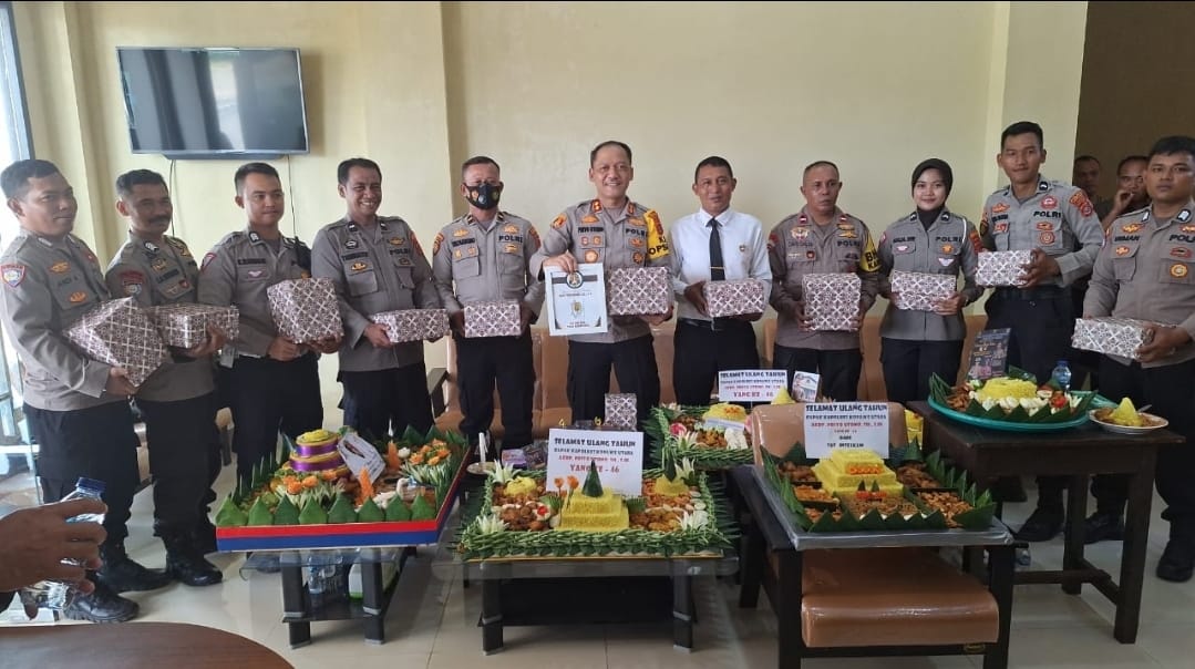 Kejutan Ulang Tahun Kapolres Konut AKBP Priyo Utomo, S.H., S.I.K berupa pemberian ucapan selamat ultah dalam bentuk kue ultah, nasi tumpeng serta Kado dari Personil Polres, para Kapolsek serta Satuan Fungsi di institusi tersebut.