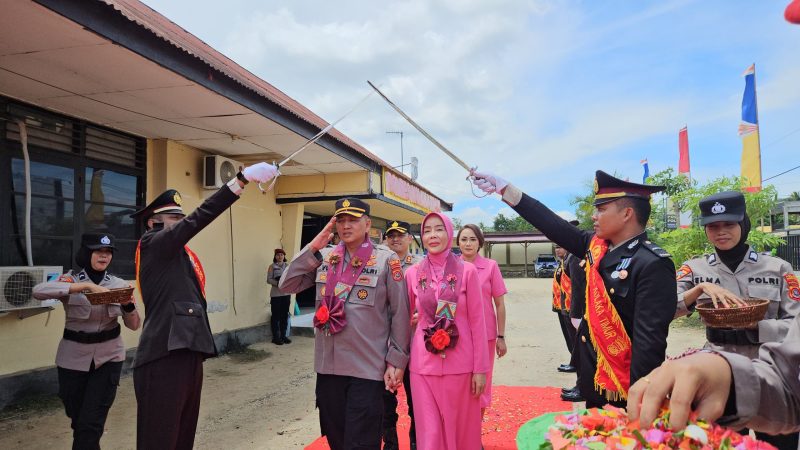 Tangis haru pun pecah di kalangan personel Polres yang turut mengantar kepergian sang pimpinan melalui prosesi Pedang Pora yang penuh kehormatan.