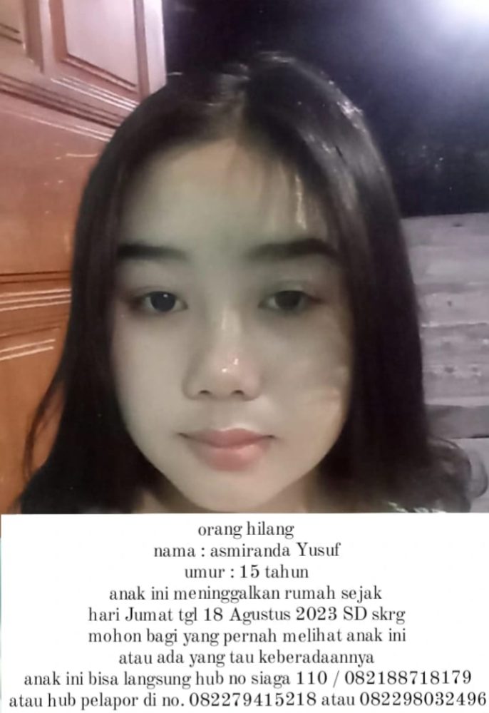 Muarasultra.com, KONAWE – Pelajar putri bernama Asmirandah Yusuf usia 15 tahun, warga Kelurahan Ambekairi, Kecamatan Unaaha, Kabupaten Konawe, Sulawesi Tenggara, dilaporkan hilang oleh orang tuanya bernama Harlina di Polresta Kendari, Selasa (22/8/2023).