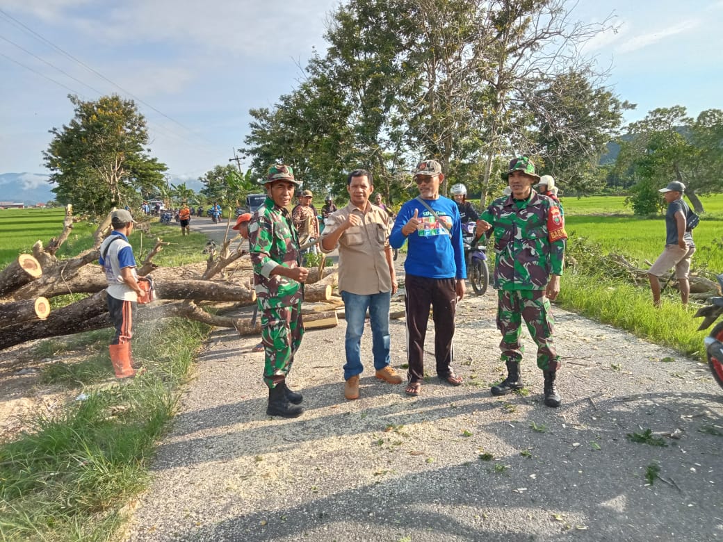 “Hari ini kami mulai bersih-bersih dan kerja bakti di jalan Poros Asolu – Garuda dan Poros Matanggorai – Atodopi, sekalian penebangan Pohon yang rawan tumbang,” ujar Dermawan.