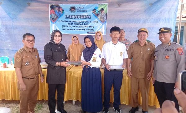 Acara launching ditandai dengan penyerahan simbolis paket makanan bergizi kepada peserta didik tingkat SMP, oleh Asisten III Setda Konawe , Forkopimcam Abuki, dan Kepala BPS Konawe .