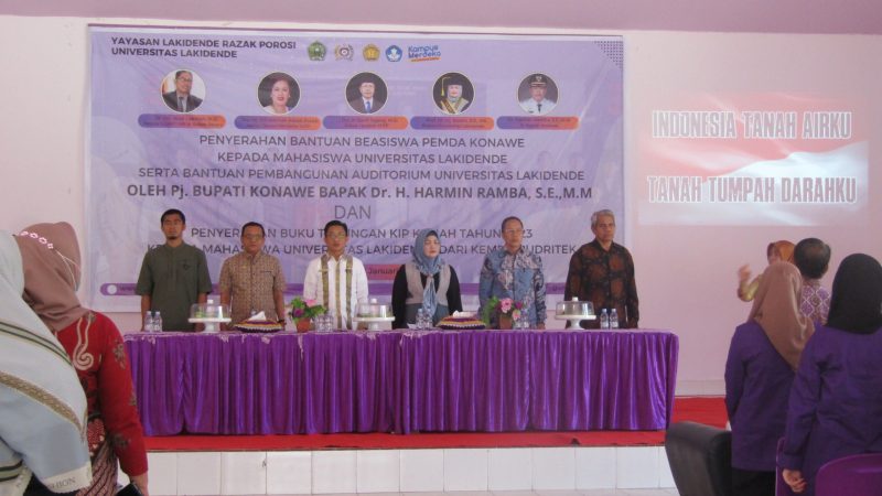 Penjabat (Pj) Bupati Konawe Harmin Ramba melalui Asisten I Pemkab, Marjuni Ma’mir, menyerahkan bantuan beasiswa senilai Rp 100 juta. Bantuan beasiswa itu diperuntukkan bagi 40 mahasiswa Unilaki yang sebelumnya telah diusulkan oleh pihak kampus Ungu tersebut. Penyaluran beasiswa itu, turut disaksikan Kabag Kesra Setkab Konawe, Andi Darmawansyah, serta Ketua Yayasan Lakidende-Razak Porosi, Syarif Sajang.