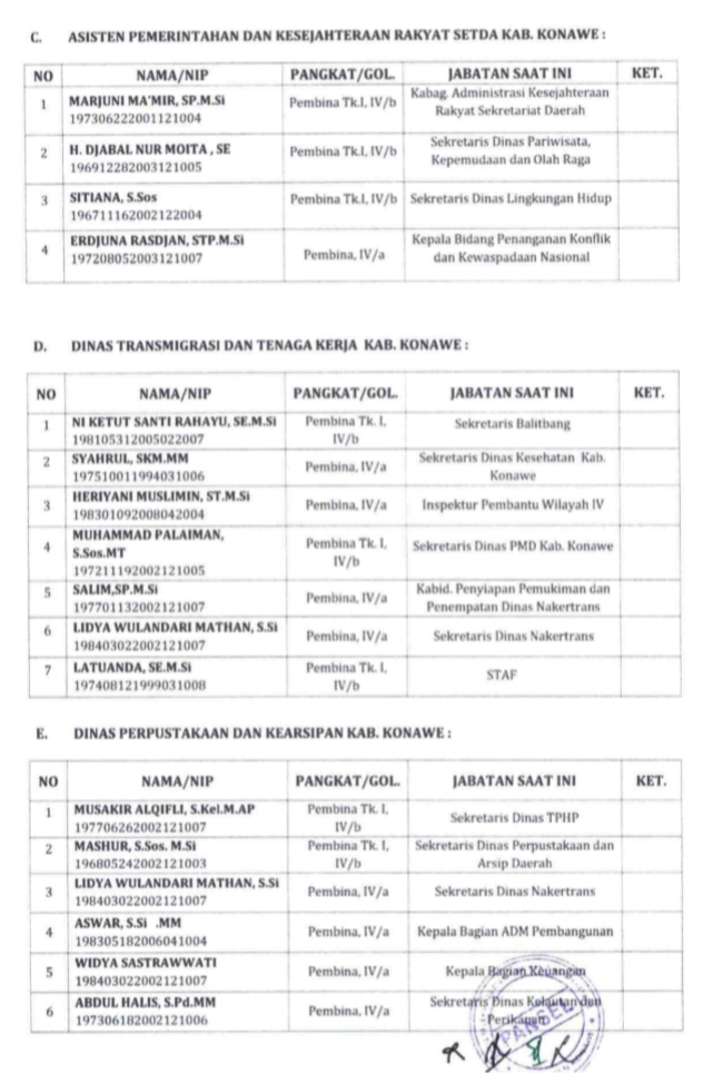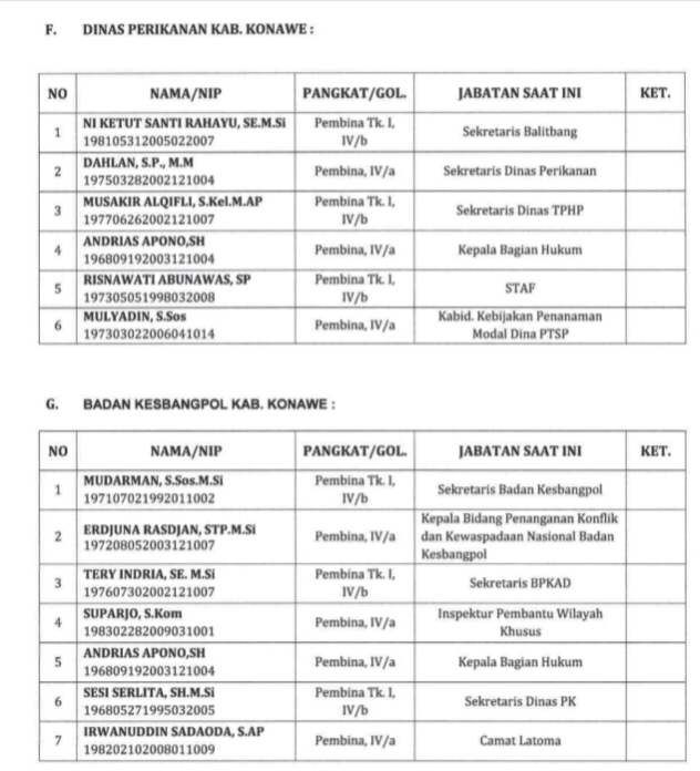 Berikut daftar pejabat yang dinyatakan lulus berkas, :